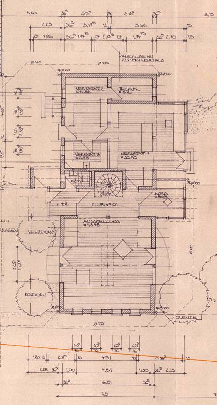 Das Geschäftshaus wurde vor wenigen Jahren neu gebaut. Im Untergeschoss befinden sich 1 WerkstattRaum mit Nebenräumen, ein kleines Büro, Toilette und eine große, doppelstockige, helle PräsentationsHalle, die im Hintergrund in eine Galerie mündet, die über den Werkstatträumen angeordnet ist. Ein Teil der Galerie ist als großer separater nach Norden ausgerichteter Raum ausgebaut.