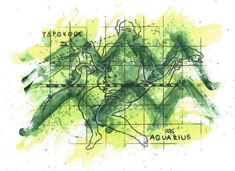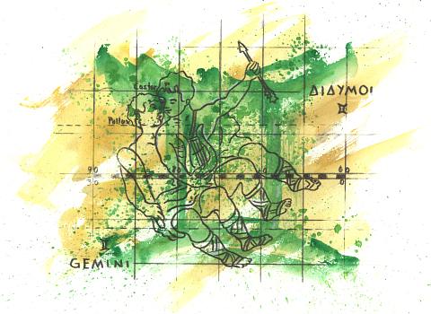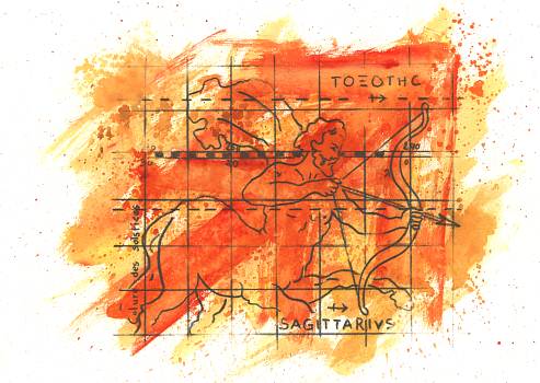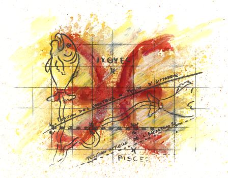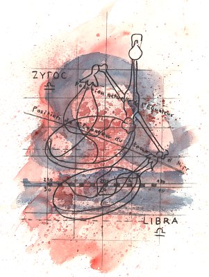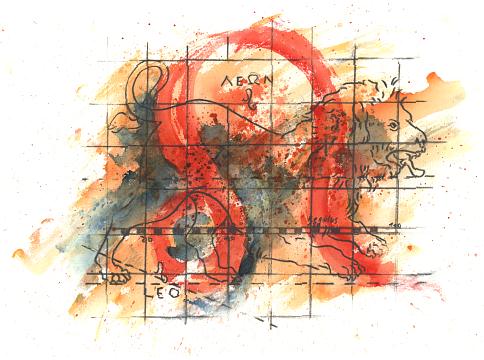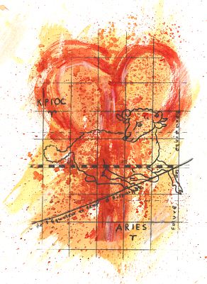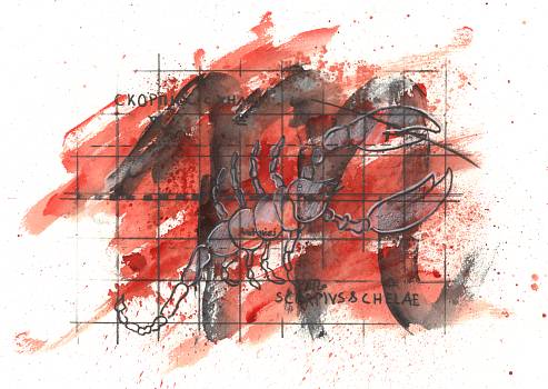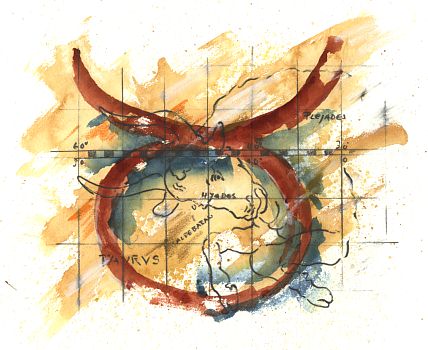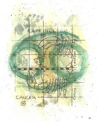 Underlayed are the zodiac signs as calligraphies in the according colours. |