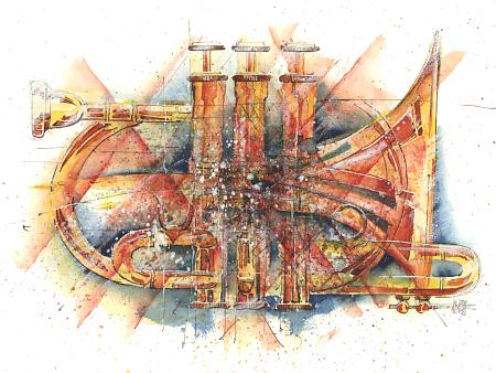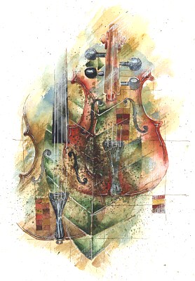 Zu jedem Sternzeichen gehört auch eine Analogie aus der Musik - ein Instrument, das seinen Charakter symbolisiert. Eine Serie, die an meine bekannten "Bilder über Musik" anknüpft/ Every sign of the zodiac has an analogy in music - an instrument symbolizing the according character. A series, continuing my wellknown series "Music Paintings". |