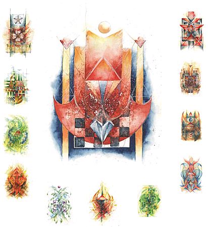 > Als Wandschmuck für den ArbeitsPlatz: Die Aspekte "Beruf" und "Arbeit" - zusammen, als EinzelBilder, ZweierKombination oder als HauptMotiv kombiniert mit Sonnenzeichen und den weiteren HäuserStellungen als individuelles AstroPortrait. | |||