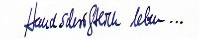 Wer einem besonders geschätzten Menschen eine wichtige Nachricht zukommen lassen will und genügend Stil besitzt, wird das auch heute manchmal noch handschriftlich auf möglichst edlem Papier tun (und nicht per SMS). Auch im Übertragenen hat zugewandtes "handschriftliches" Handeln nicht nur etwas mit der (unabdingbaren) eigenen Wertschätzung, sondern auch mit der Wertschätzung des "Anderen" zu tun, wenn eben mehr als das Abziehbild wohlfeilen Mainstreams "geboten" werden soll. | ||||||