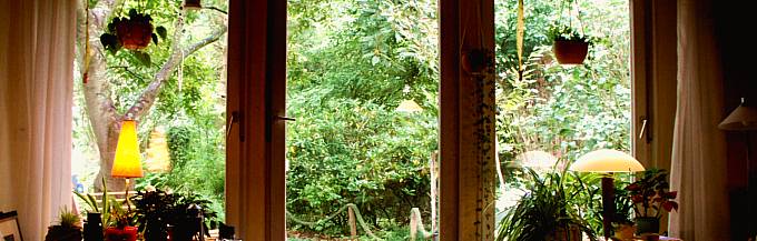 | Daher hat das vorläufige Ende meiner Arbeit für "Abenteuer Aquarell" durchaus positive Aspekte: ich kann mich wieder ganz und ohne "Sprünge" meinen "ureigensten" Konzepten widmen. Trotzdem habe ich auch die Erarbeitung des aktuellen Bandes "Blumen" wieder sehr genossen. Viel Material dafür fand sich in direktester Nähe: unser mit vielen verschiedenen Bäumen, Büschen, Pflanzen, Gräsern und Blumen bestückter Garten rings ums Haus bot von Frühjahr bis Herbst eine Vielzahl an "Material", das nur gesammelt und für "Abenteuer Aquarell" aufbereitet werden musste. Dass wir den Blick in den vielfältigen und wegen des besonderen lokalen Klimas üppig wuchernden Garten vor unserer Wohnzimmerterrasse auch darüber hinaus täglich sehr genießen, lässt sich unschwer nachvollziehen: | |||