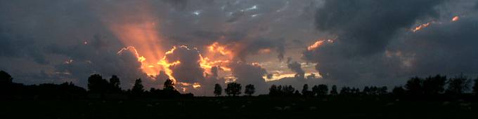 Ab Oktober/November soll dann (endlich ...) wieder die Arbeit am Konzept "Systeme & Prozesse" weitergeführt werden - wenn ich nicht wie so oft eben mal wieder einen der unbeschreiblichen Sonnenuntergänge vor dem Fenster meines Arbeitszimmers einfangen muss: die viele Meilen weit nahezu ungehinderte Sicht über flaches Land und Meer generiert ganz besonders in unserem Landstrich eben durch das Zusammentreffen dieser beiden Komponenten Wolkenformationen und Sonnenuntergänge von einer Dramatik, die ich immer wieder als "Große Oper" empfinde: