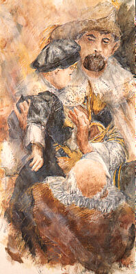mit zwölf einmeterundzwanzig großen TafelBildern auf HolzPlatte. |