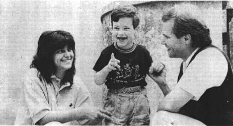 Nach dem Aufenthalt in einer Hamburger Praxisklinik-Hoffnung für einen kleinen bosnischen Jungen: Nadir Hairo entdeckt die Welt auf eigenen Füßen Weisenberger brachte Mutter und Sohn wieder nach Dinkelsbühl - Junge Familien gesucht - Benefizkonzert DINKELSBÜHL (sh) - Hoffnung für den fünfeinhalbjährigen Nadir Hajro aus Sarajewo: Als der kleine bosnische Junge am Abend des 27. Juli in Dinkelsbühl ankam, konnte er nicht laufen. Von einer Operation war die Rede. Fünf Wochen später kann Nadir an der Hand seiner Mutter Enisa Hajro langsam gehen. Möglich gemacht haben dies viele spontane Helfer und die Aktion WI.R (Wirken in der Realität - Hilfe für Kin- der in/aus Krisengebieten). Als der Dinkeisbühler Maler Thomas Weisenberger im vergangenen Dezember die Aktion anregte, dachte er auch an die Tradition der ,,Kinderzeche", mit der die sagenhafte Errettung der Stadt im 3o-jährigen Krieg gefeiert wird. W.I.R will in einer beispielhaften Aktion zeigen, daß mit Eigeninitiative und unbürokratischem Handeln geholfen werden kann. Und wenn es auch vorerst ,nur' ein Kind ist, das ,da rausgeholt' werden konnte - auch einzelne Gesten wirken." Nadir Hajro hat dies schon viel geholfen. Nach den ersten Untersuchungen in der Hamburger Praxisklinik Mümmelsmannsberg war bereits klar, daß eine große Operation nur schaden würde. Nötig waren lediglich zwei kleine Schnitte in der Leistengegend, Schuhe mit Spezialeinlagen, Schwimmen und viele, viele Übungen. Nachdem die Hamburger Arzte mit Dr: Jochum an der Spitze zusammen mit Nadir und Enisa Hajro das Optimale erreicht hatten, konnte Weisenberger die beiden am Mittwoch wieder nach Dinkelsbühl holen. Wegen verschiedener Staus dauerte die Fahrt bis in den Abend. Froh waren die drei, daß ein Dinkeisbühler Autohaus einen komfortablen Pkw zur Verfügung gestellt hatte. - Nach einigen Tagen des Einlebens werden Physiotherapeuten mit Nadir weiter üben. Der oberste Grundsatz heißt Hilfe zur Selbsthilfe. Nadir, seine Mutter und sein Vater, der in Sarajewo geblieben ist, sollen auch daheim üben können. In Dinkelsbühl leben Mutter und Sohn in einer kleinen Wohnung. In Hamburg war es Nadir manchmal langweilig. Spielkameraden fehlten. Thomas Weisenberger wäre deshalb froh, wenn junge Familien Nadir und Enisa Hajro den Aufenthalt in Dinkelsbühl ein wenig kurzweiliger gestalten könnten. Vielleicht findet sich auch ein Zahnarzt, der das Notwendigste wieder in Ordnung bringt. Weisenberger: ,,In Sarajewo ist dies unmöglich." Auch wenn Enisa Hajro Heimweh hat, werden sie und ihr Sohn noch einige Wochen in Dinkelsbühl bleiben. Zur Unterstützung der Hilfiaktion findet am Samstag, 10. September, im Großen Schrannensaal die ,,1. Dinkeisbühler Rock'n Roll Benefizveran- staltung" mit den ,,Thunderbirds" und der Rock'n Roll Gruppe einer Tanzschule statt. Für - Bürgermeister Dr. Jürgen Walchshöfer setzt hier jedes Mitmachen, jeder persönliche Einsatz zur Linderung von Not und Leid, weitere Zeichen und vervielfältigt die Hilfe und die Chancen zum Überwinden der Elendszustände. Viereinhalb Wochen war Nadir Hajro (Mitte) in einer Hamburger Klinik. Jetzt ist er wieder in Diflkelsbühl. Seine Mutter Enisa Hairo (li.) und Thomas Weisenberger (re.) von WI.R sind mit dem bisher Erreichten zufrieden. Foto: Haberl |