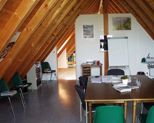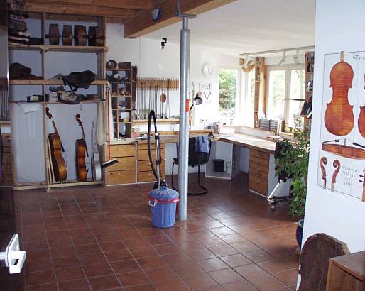 Das Geschäftshaus wurde vor wenigen Jahren neu gebaut. Im Untergeschoss befinden sich 1 WerkstattRaum mit Nebenräumen, ein kleines Büro, Toilette und eine große, doppelstockige, helle PräsentationsHalle, die im Hintergrund in eine Galerie mündet, die über den Werkstatträumen angeordnet ist. Ein Teil der Galerie ist als großer separater nach Norden ausgerichteter Raum ausgebaut.