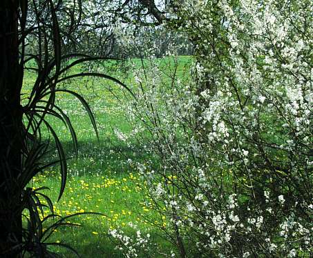 Fensterhöhe eingelassen, damit man die Wiesen und Bäume im