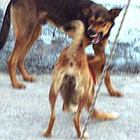 zurückweichen ließ. Danach blieb der andere Hund an der Stelle liegen, an die