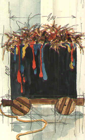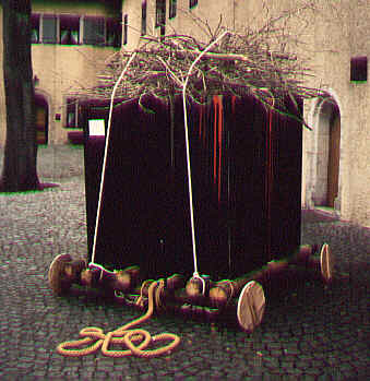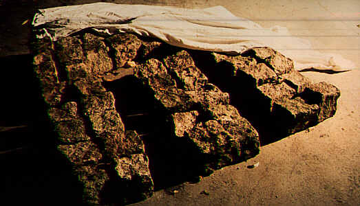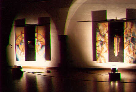 Besorgte Bürger befürchteten bei der ersten Voranzeige dieser Ausstellung 1994 Anarchie und Revolution, vor wenigen Tagen (Stand 2008) wurde diese Seite gar (irrtümlicher Weise?) von Hackern (die wohl nicht allzu viel Ahnung von der behandelten Materie hatten) zerstört. In Wirklichkeit ging es in dieser Rauminstallation mit meinen Objektarbeiten um die Philosophie des von der Physik vorgestellten "Chaos-Prinzips". Es ging um Metaphysik und Gedanken um die menschliche Befindlichkeit in der "An- oder Abwesenheit Gottes". Ein paar Besucher verstanden das sogar. Hier ein paar Eindrücke aus dieser Ausstellung, ganz unten einige ausführlichere Erklärungen zum Objekt "Postmoderne": |