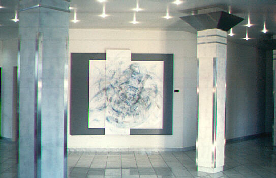 mehrere großformatige Bilder und Objekte, teilweise als Zusammenfassung meiner Ideen und