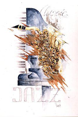 A symbolic motifs: The Sax for "Jazz", the piano for the classical parts.