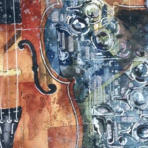 QuerFlöte vor dem Hintergrund eines StreichEnsembles. Das Motiv ist