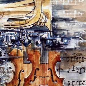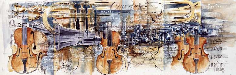 Ein Motiv, das den Einsatz der Trompeten, Klarinetten und Streicher in einem Teil des Stückes portraitiert.