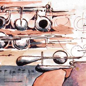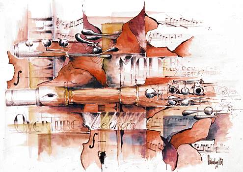 Eingearbeitet sind 2 FlötenModelle aus der Zeit der Entstehung der Ouverture. Das Motiv ist lieferbar bis zur Größe A2
