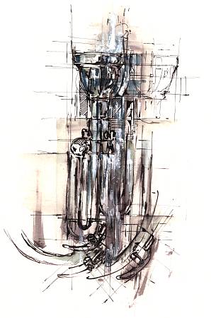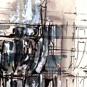 Ein frühes Motiv, bei dem noch die Vorliebe für Tusche und dezenten Umgang mit Farbe dominierte.
