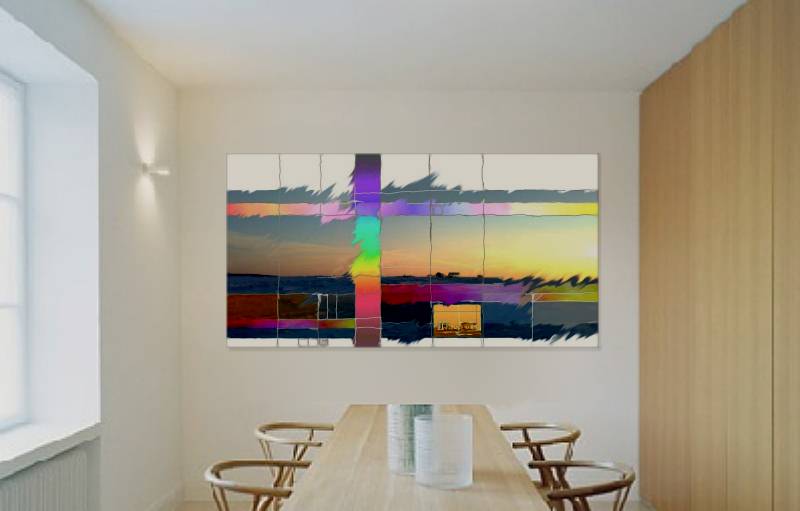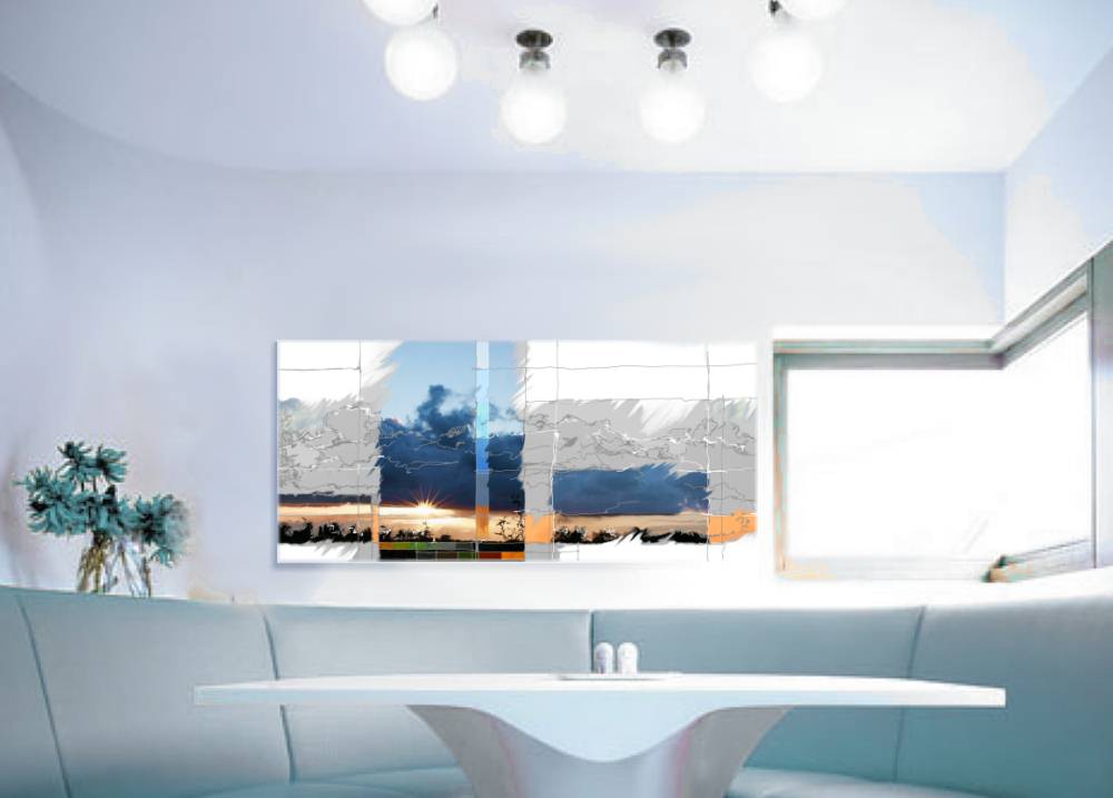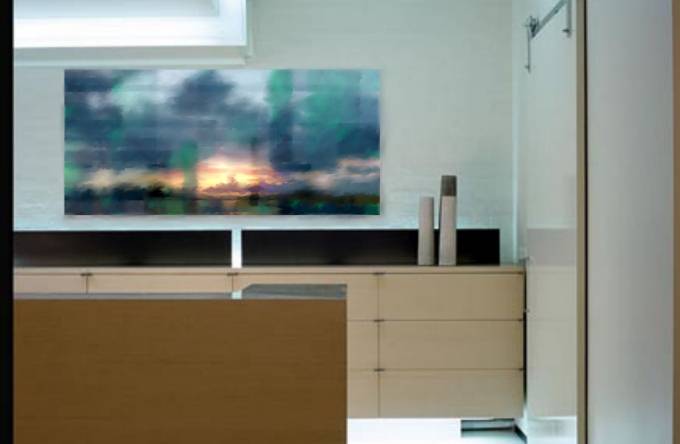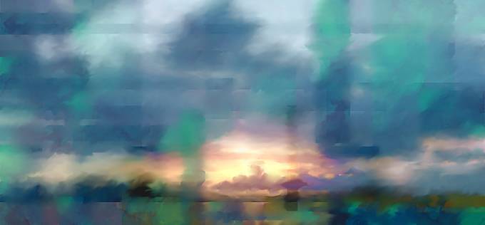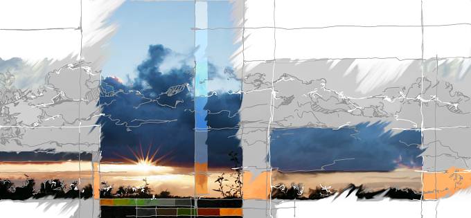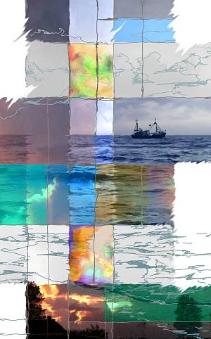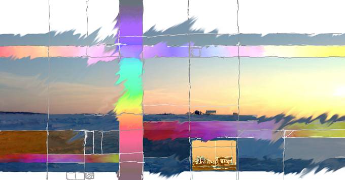 Wie drückt man "Stille" musikalisch aus? Eigentlich ein Widerspruch in sich. Der Musiker Jochen Sponsel hat die Auflösung dieses scheinbaren Paradoxons in einer Veranstaltung über "Ausdruck", die wir in den 90ern gemeinsam gestalteten, eindrucksvoll "performt": erst durch gekonnt gesetzte "Brüche" wird Stille plastisch erlebbar. Nicht anders in der Malerei: Die Erklärung führt über einen visuell-physikalischen Sachverhalt: Mancher Laie würde auf die Frage, in welcher Farbe die Addition aller anderen Farben enthalten ist, auf "Schwarz" tippen – gerade das Gegenteil ist aber der Fall: in weißem Licht ist das gesamte Spektrum aller Farben enthalten – und in der "Brechung" von Weiß werden diese Farben erst sichtbar. Bekanntestes Beispiel ist der Regenbogen, in dem durch die Brechung des weißen Lichts in einer Unzahl feinster Wassertropfen das Spektrum der enthaltenen Farben "dekliniert" wird. Wie drückt man "Weite" aus? Meine bildnerische Antwort besteht darin, Ansichten der "Himmel-Weite" über dem Meer und die Brechungen des Lichts im definierten Raum einer Bildkomposition zu "deklinieren" und durch analytische "Brüche" zu portraitieren. / english version