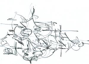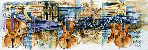 Am Anfang war Musik. Eine Serie von vielen hundert Bildern, in denen ich mich mit musikalischen Themen beschäftigte. Immer wieder auch damit, den "Prozess in der Zeit", den der Verlauf eines Musikstücks darstellt, in einen "Prozess im Raum", meiner Malfläche, zu überführen und damit das Prinzip eines solchen Prozesses sichtbar zu machen. (s. dazu auch "Prozesse in Zeit und Raum") | ||||||||||||||||||||||