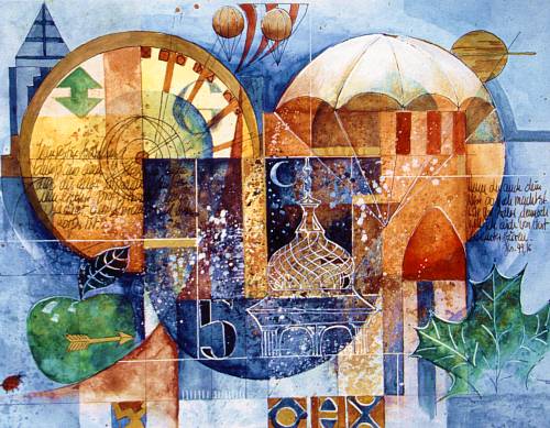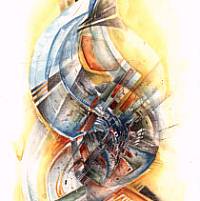 Das Weltall, eine Gesellschaft, eine Beziehung sind dynamische, lebendige Systeme in denen dynamische lebendige Prozesse stattfinden. Diesen Grundmustern spüre ich in meinen "Weltformeln" nach und versuche, etwas nicht materiell, formal und visuell existentem einen sichtbaren Ausdruck zu verleihen: der "Idee" der Lebendigkeit und ihrer Aktionsmuster und -verläufe. Die komplexe Vielschichtigkeit meiner Mischtechnik, in der ich viele verschiedene Einzeltechniken kombiniere, eignet sich besonders zur Darstellung. Ob man in diesen Bildern die Grundmuster einer mathematischen, chemischen oder physikalischen Entwicklung, die Struktur eines wirtschaftlichen Prozesses, Interaktionsmuster menschlicher Beziehungen oder den Verlauf einer individuellen Lebensexistenz sehen will, soll dabei ganz bewusst offen bleiben. Ich denke, jedes dieser Systeme und Prozesse hat im Grunde ähnliche Aktions- und Reaktionsmuster - eine komplexe, fractale, "chaotische" "Weltformel" der ich in diesen Arbeiten nachspüre. | ||||||||||||||||||||||