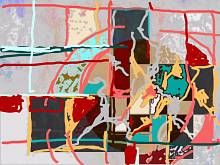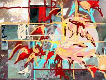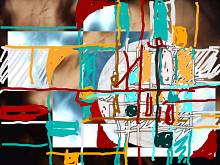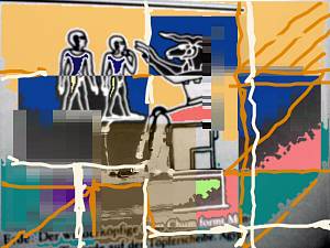 teilweise Übermalungen von Photomaterial, teilweise "freihand".
