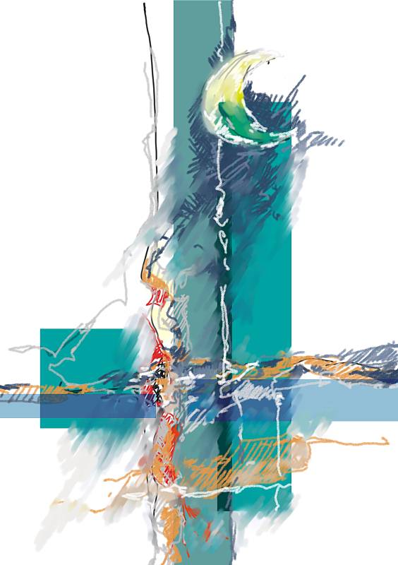 Zuerst entstanden mehrere Vorskizzen und Studien im mobilen Skizzenbuch meines "smarten" Mobiltelefons (drei Motive sind unten abgebildet), darauf aufbauend entstand zuhause am Computer und Grafiktablett das Hauptmotiv. |