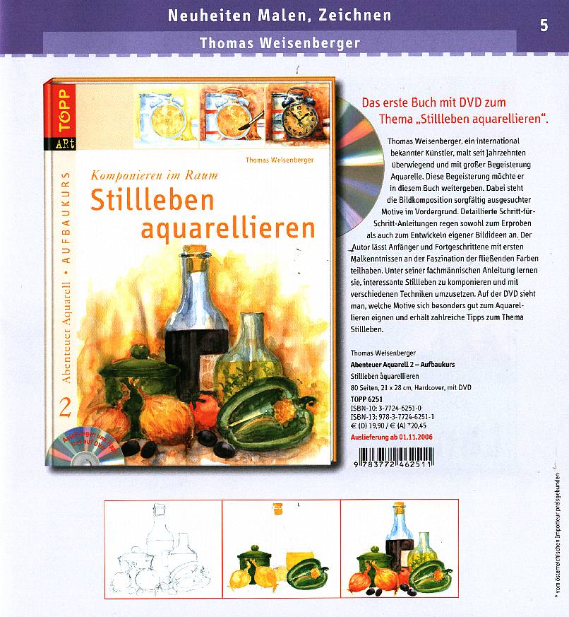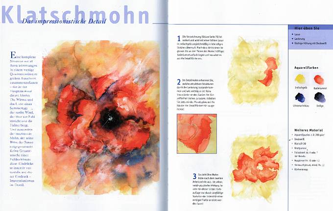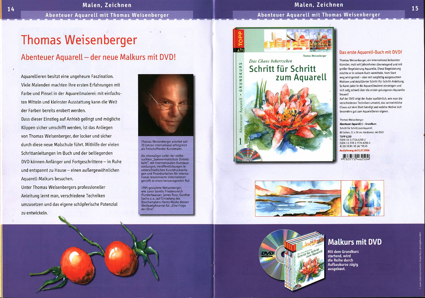 Im Frühjahr 2006 ergab sich meine Zusammenarbeit mit dem Frechverlag Stuttgart zur Erarbeitung einer neuen Buchreihe "Abenteuer Aquarell". Anleitungen zum Aquarellieren gibt es ja mittlerweile einige auf dem Buchmarkt. Diese Buchreihe fällt jedoch auf durch einige Innovationen: